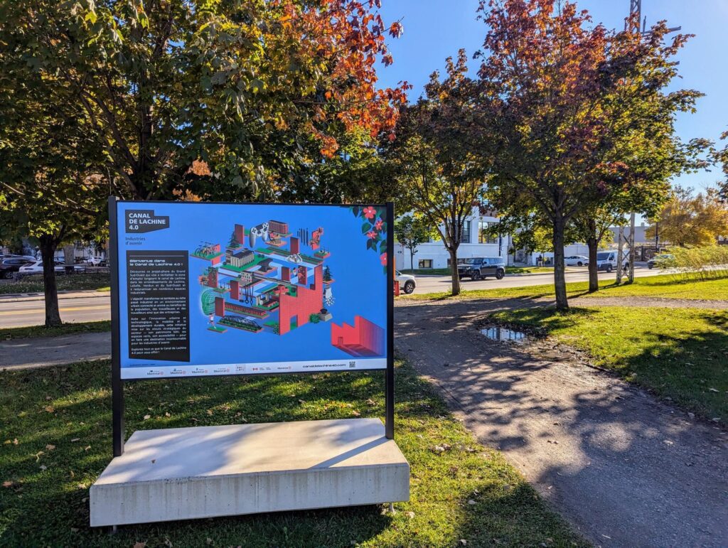 Quatre panneaux d’affichage ont été installés sur le territoire visé par le projet Canal de Lachine 4.0. Ces panneaux, fabriqués par Art Publix, ont pour but de faire découvrir la vision du projet aux résidents et travailleurs locaux. Les visuels, conçus par l’illustrateur Romain Lasser, mettent en lumière les domaines d’activité, les bâtiments historiques, les transports dynamiques, les espaces verts et les activités de loisirs disponibles sur le Canal de Lachine.